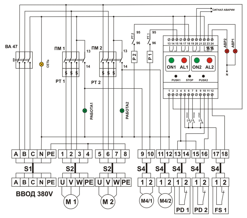 ПМ 1/2 –магнитный пускатель основного/резервного вентилятора