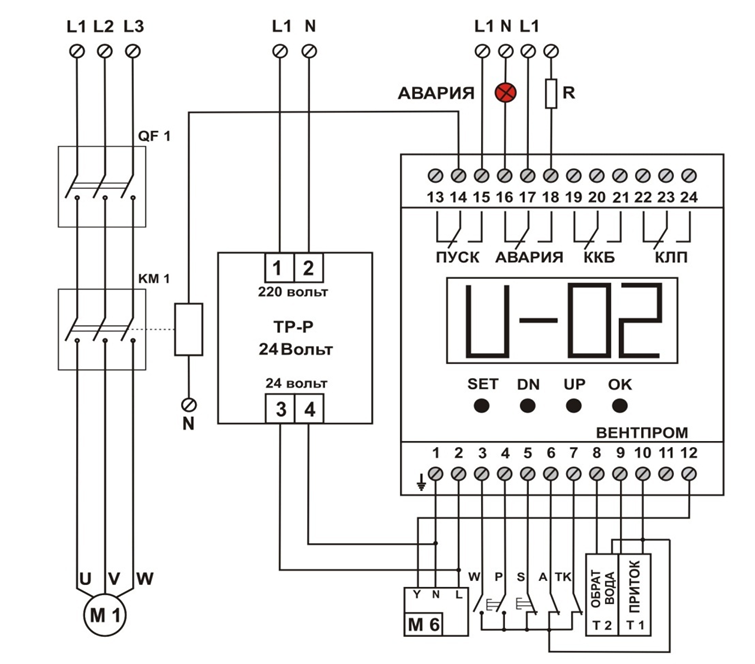 РТ 1/2 – реле тепловое основного/резервного вентилятора