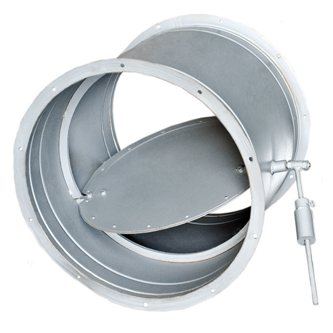 Клапан состоит из корпуса и заслонки сбалансированной противовесом позволяющим удерживать её в закрытом положении. Корпус заслонки изготавливается из оцинкованной или углеродистой стали, имеет фланцевое соединение. Заслонка или её обрамление изготавливается из алюминиевого сплава.
