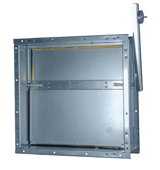 Клапан состоит из корпуса и заслонки сбалансированной противовесом позволяющим удерживать её в закрытом положении. Корпус заслонки изготавливается из оцинкованной или углеродистой стали, имеет фланцевое соединение. Заслонка или её обрамление изготавливается из алюминиевого сплава.Максимальный (присоединительный) типоразмер АЗЕ 1000х1000мм.