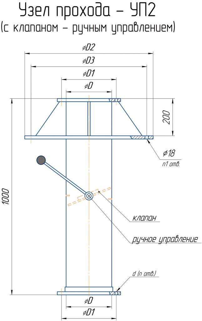 УП2 – узел прохода, 2 – индекс означающий вид исполнения: с клапаном ,с ручным приводом