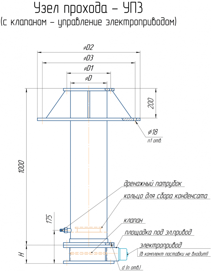 - Узел прохода УП 3 - с клапаном под электропривод (без кольца/с кольцом)