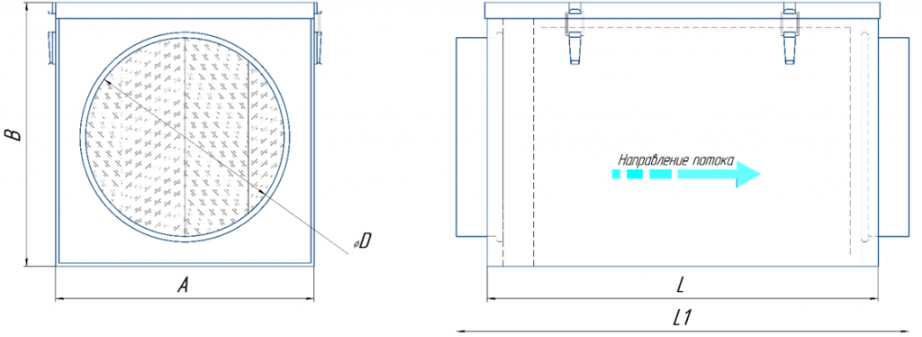 Фильтр ФВП состоит из корпуса, изготовленного из оцинкованной стали и фильтрующей кассеты , снабжен патрубками круглого сечения для присоединения круглых воздуховодов и деталей систем вентиляции. Фильтр изготавливается по присоединительному диаметру на нипельном соединении от Ø100 до Ø500мм.