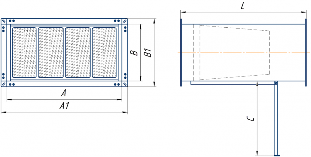 Размеры АхВ – соответствуют основным присоединительным размерам трубопроводов прямоугольного сечения и *по желанию заказчика могут быть изготовлены нестандартных размеров!