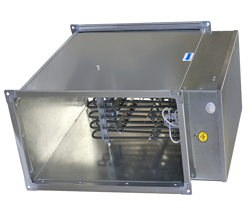 Прямоугольный электрический канальный нагреватель может использоваться как основное нагревательное устройство в системах приточной вентиляции, обеспечивая нагрев поступающего наружного воздуха. Вместе с регулятором температуры и вентилятором в такой реализации он формирует приточный агрегат.